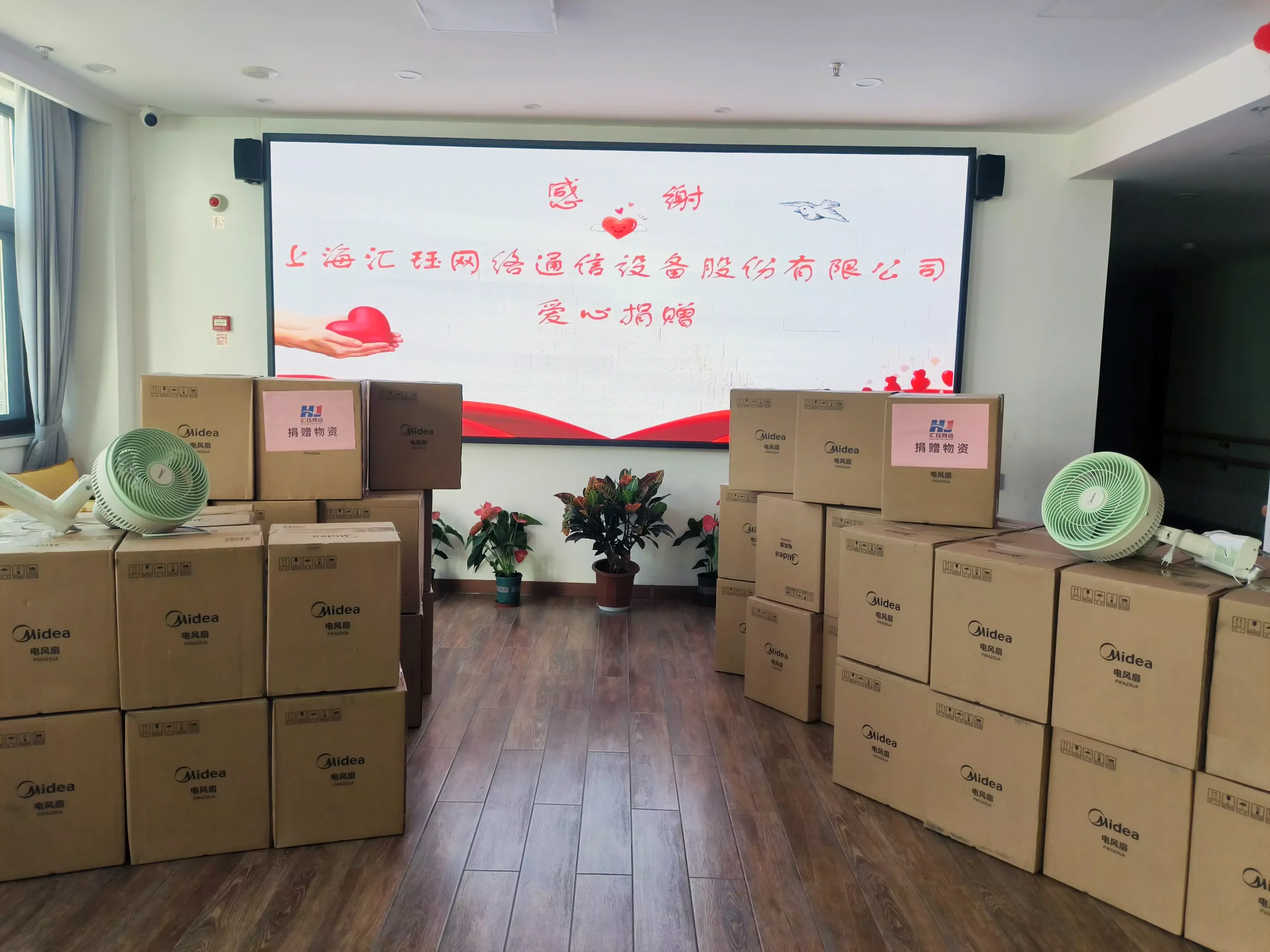 ▲ Electric fans donated by Huijue Group