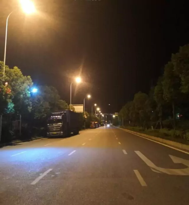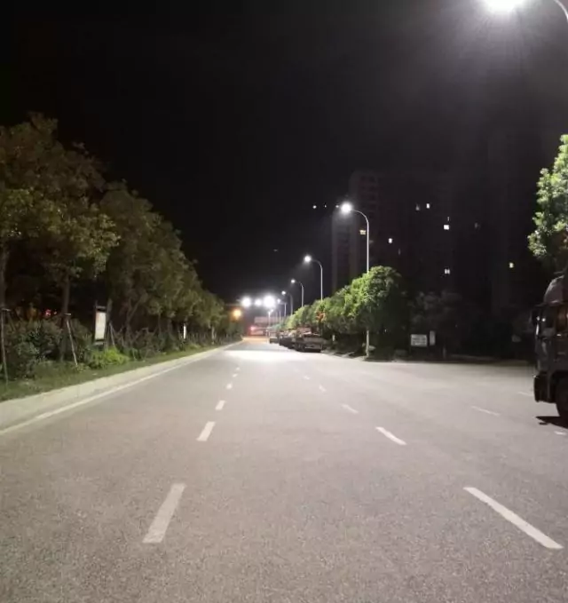 Before the reconstruction of the Daye Highway section, the illumination was relatively dim, and there were obvious zebra patterns between the two street lights.